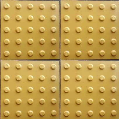 Piso tátil em concreto (ladrilho hidráulico): fabricado nas dimensões 20×20, 25×25 e 30×30, sua função é direcionar e alertar pessoas com deficiência visual ou baixa visão para se locomoverem a determinados locais. Deve ter cores contrastantes ao piso existente.