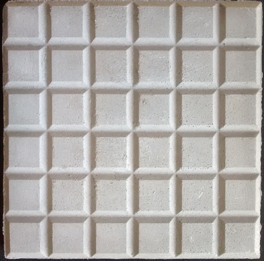 Ladrilho hidráulico: placa de concreto de alta resistência, pisos internos e externos, contendo uma superfície com texturas em relevo, colorida ou não, de formato quadrado, retangular ou outra forma geométrica definida. Indicado para calçadas, passeios públicos, praças, garagens, estacionamentos, rampas para automóveis, ambientes internos, bordas de piscinas etc. Sua principal característica é a alta resistência a zonas de tráfego intenso, aliando aspectos antiderrapantes e de alta resistência à abrasão. Este revestimento recebeu o nome de ladrilho hidráulico pelo fato de ser apenas molhado, sem processos de queima. Oferece segurança para as pessoas mesmo quando molhados.