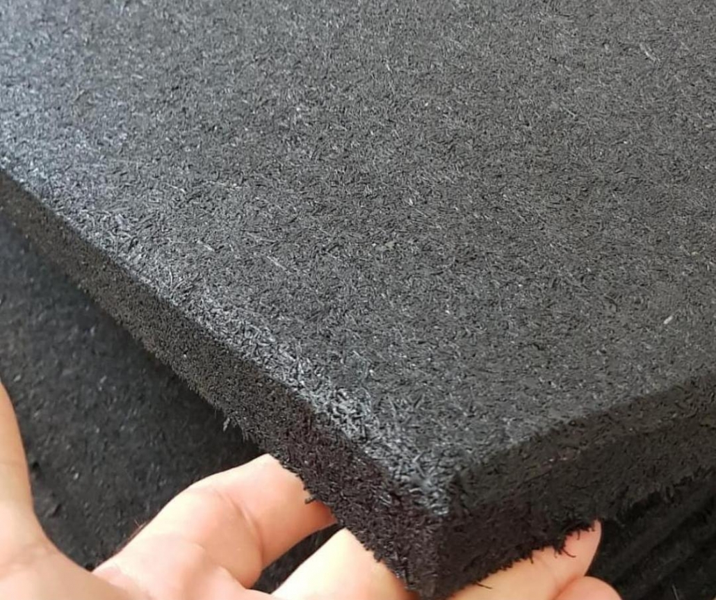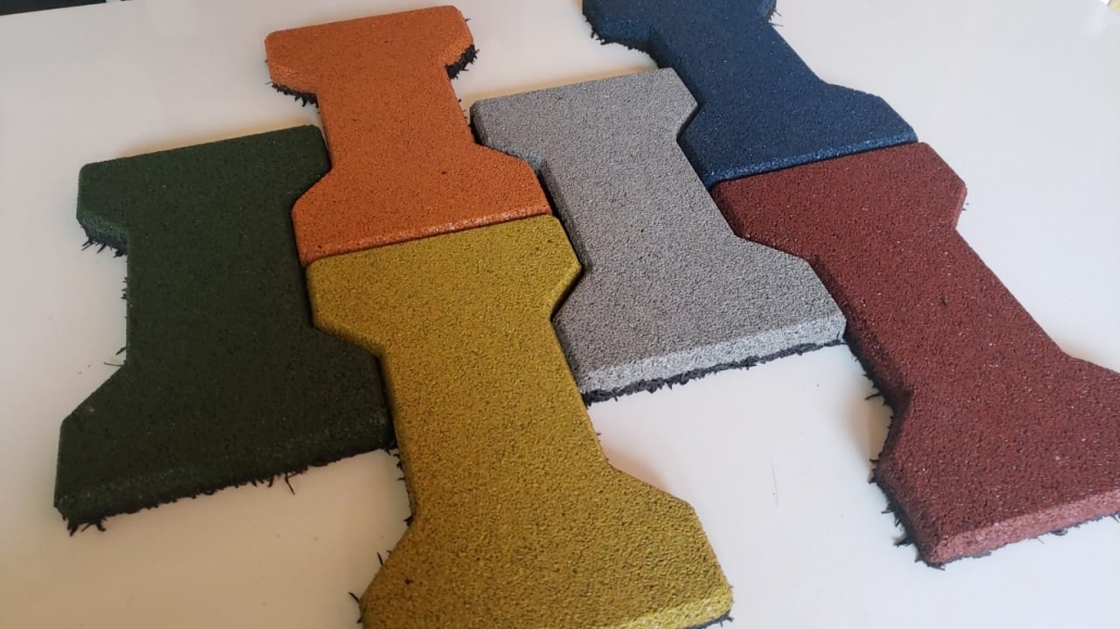 Piso de borracha reciclada de pneus inservíveis vulcanizado com resina e pigmentos industriais.