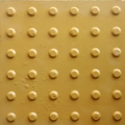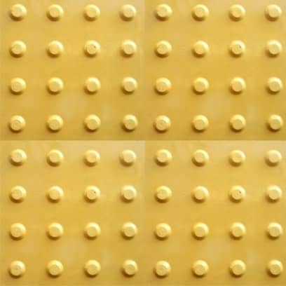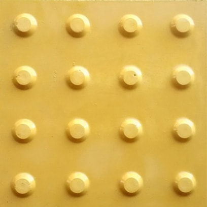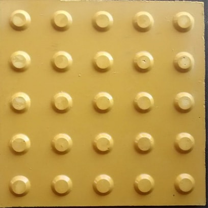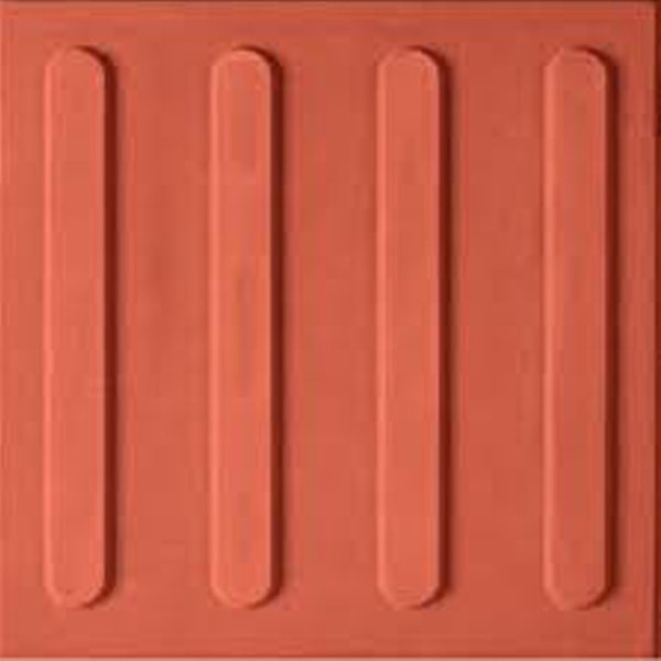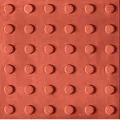 Piso tátil em concreto (ladrilho hidráulico): fabricado nas dimensões 20×20, 25×25 e 30×30, sua função é direcionar e alertar pessoas com deficiência visual ou baixa visão para se locomoverem a determinados locais. Deve ter cores contrastantes ao piso existente.